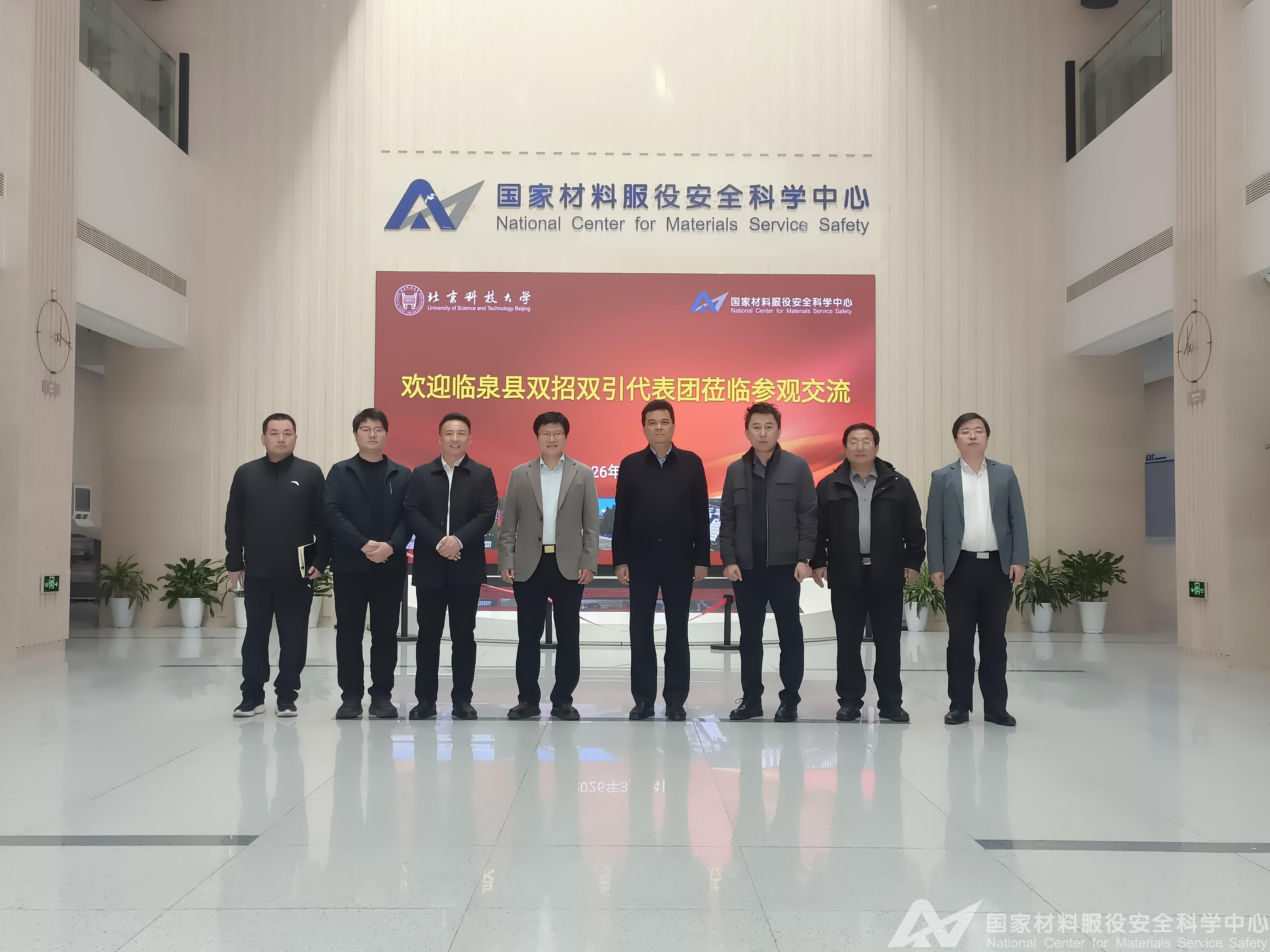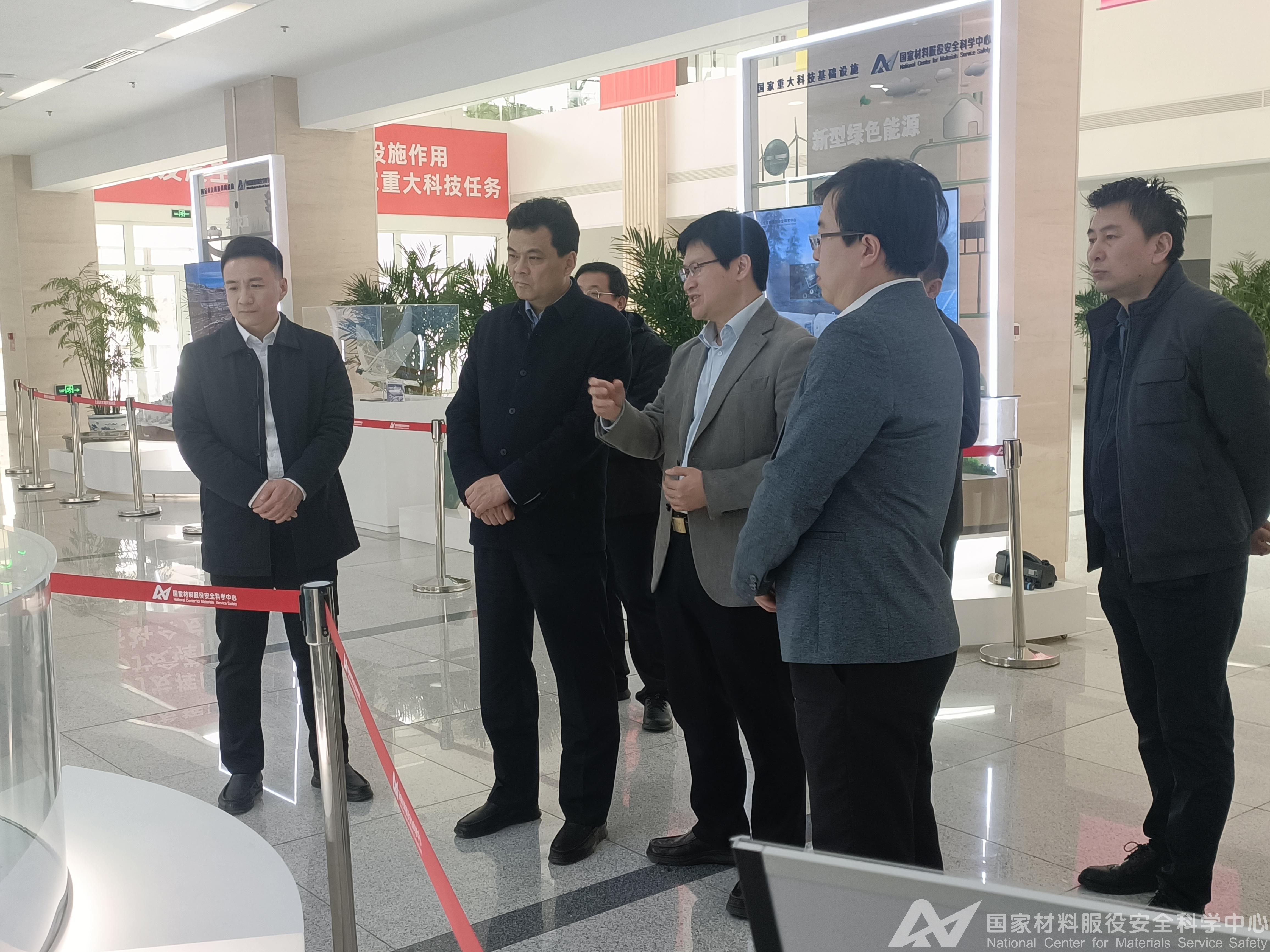 2026年3月14日,安徽省阜阳市临泉县委书记江利国率双招双引代表团一行到访国家材料服役安全科学中心(以下简称“国家科学中心”),中心主任庞晓露、副主任梁治国接待并陪同代表团参观了中心实验站。